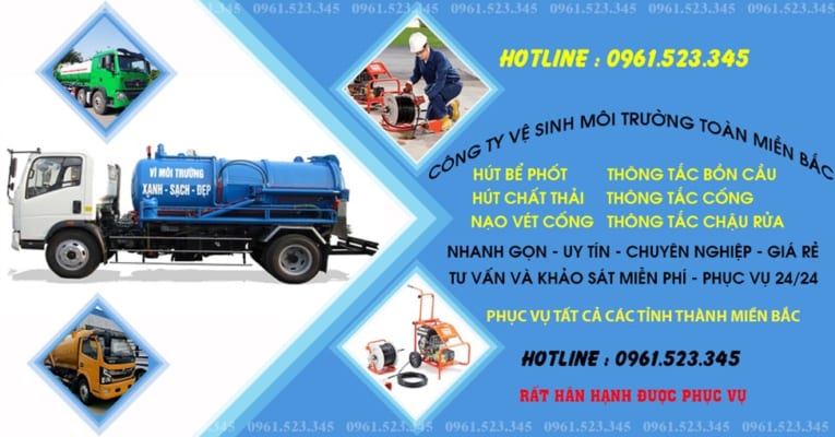 Công ty Môi Trường Miền Bắc Chuyên RÚT HẦM CẦU, VẬN CHUYỂN BÙN VI SINH, THÔNG CẦU CỐNG NGHẸT, THÔNG NGHẸT BỒN RỬA CHÉN. Với công nghệ tiên tiến hiện đại nhất hiện nay.